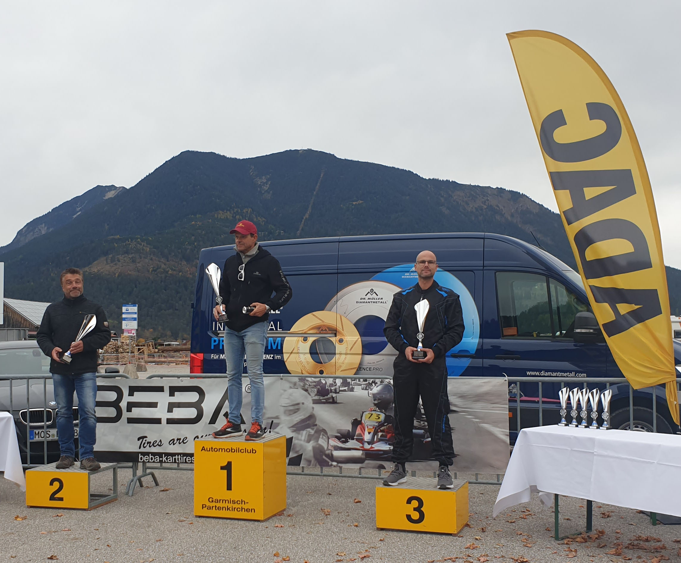 Die Erstplatzierten der Klasse 4 beim 270er Kart Slalom Endlauf. 1. Guido Keller, AC München; 2. Michael Becherer, MSG Sonthofen; 3. Tobias Schrepfer, MAC Königsbrunn Bild: Melanie Schrepfer